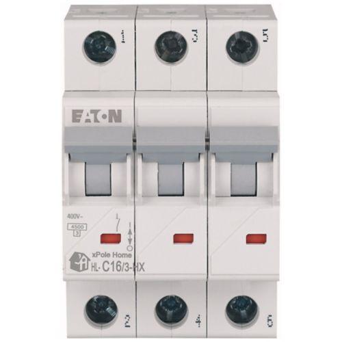 Eaton Moeller series xPole Home - HN/HN-HX MCB. HN, xPole Home, 3-pole, tripping characteristic: C, rated current In: 16 A, rated switching capacity IEC/EN 60898-1: 6 kA