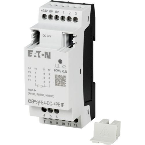 Eaton Moeller series EASY I/O expansion for easyE4 with temperature detection Pt100, Pt1000 or Ni1000, 24 VDC, analog inputs: 4, push-in