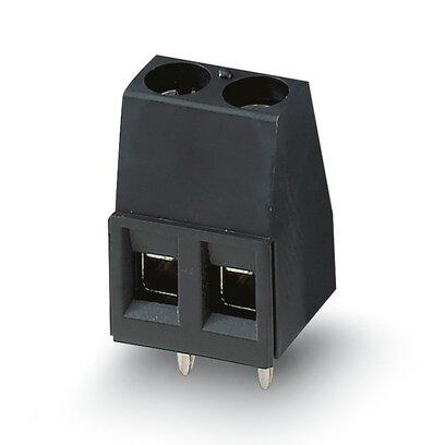 PCB terminal block, nominal current: 17.5 A, rated voltage (III/2): 320 V, nominal cross section: 1.5 mm2, number of potentials: 2, number of rows: 1, number of positions per row: 2, product range: MKDS 1,5/..-HT, pitch: 5.08 mm, connection method: Screw connection with tension sleeve, screw head form: L Slotted, mounting: THR soldering, conductor/PCB connection direction: 0 °, color: black, Pin layout: Linear pinning, Solder pin [P]: 3.5 mm, number of solder pins per potential: 1, type of packaging: packed in cardboard. This article can be soldered in the reflow furnace together with SMD components.
