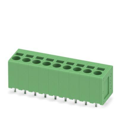 PCB terminal block, nominal current: 24 A, rated voltage (III/2): 400 V, nominal cross section: 2.5 mm2, number of potentials: 9, number of rows: 1, number of positions per row: 9, product range: SPT 2,5/..-V, pitch: 5 mm, connection method: Push-in spring connection, mounting: Wave soldering, conductor/PCB connection direction: 90 °, color: green, Pin layout: Linear pinning, Solder pin [P]: 2.5 mm, number of solder pins per potential: 2, type of packaging: packed in cardboard