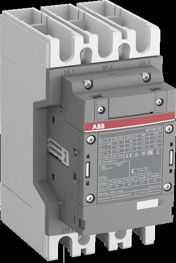 AF190-30-00-13 Contactor. The AF190-30-00-13 is a 3 pole - 1000 V IEC or 600 V UL contactor with Main Circuit Bars, controlling motors up to 90 kW / 400 V AC (AC-3) or 125 hp / 480 V UL and switching power circuits up to 275 A (AC-1) or 250 A UL general use. Thanks to the AF technology, the contactor has a wide control voltage range (100-250 V 50/60 Hz and DC), managing large control voltage variations, reducing panel energy consumptions and ensuring distinct operations in unstable networks.
