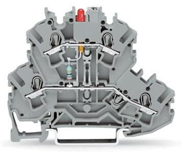 Double-deck LED terminal block; red LED (P-N between first and second level); rail mount; 2-conductor; 5.2 mm wide; gray