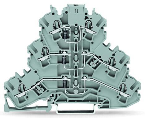 Three-level component terminal block with 3 diodes 1N4007 Anode right for DIN rail 35 x 15 and 35 x 75 25 mm² Pushin CAGE CLAMP 250 mm² gray