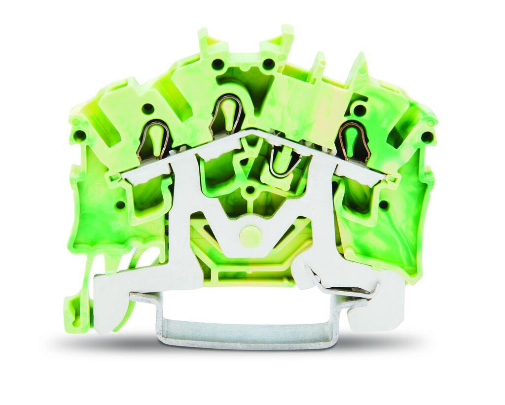 Earth terminal for 3 conductors 25 mm² suitable for Ex e II applications center and side marking for DIN rail 35 x 15 and 35 x 75 Pushin CAGE CLAMP 250 mm² green yellow