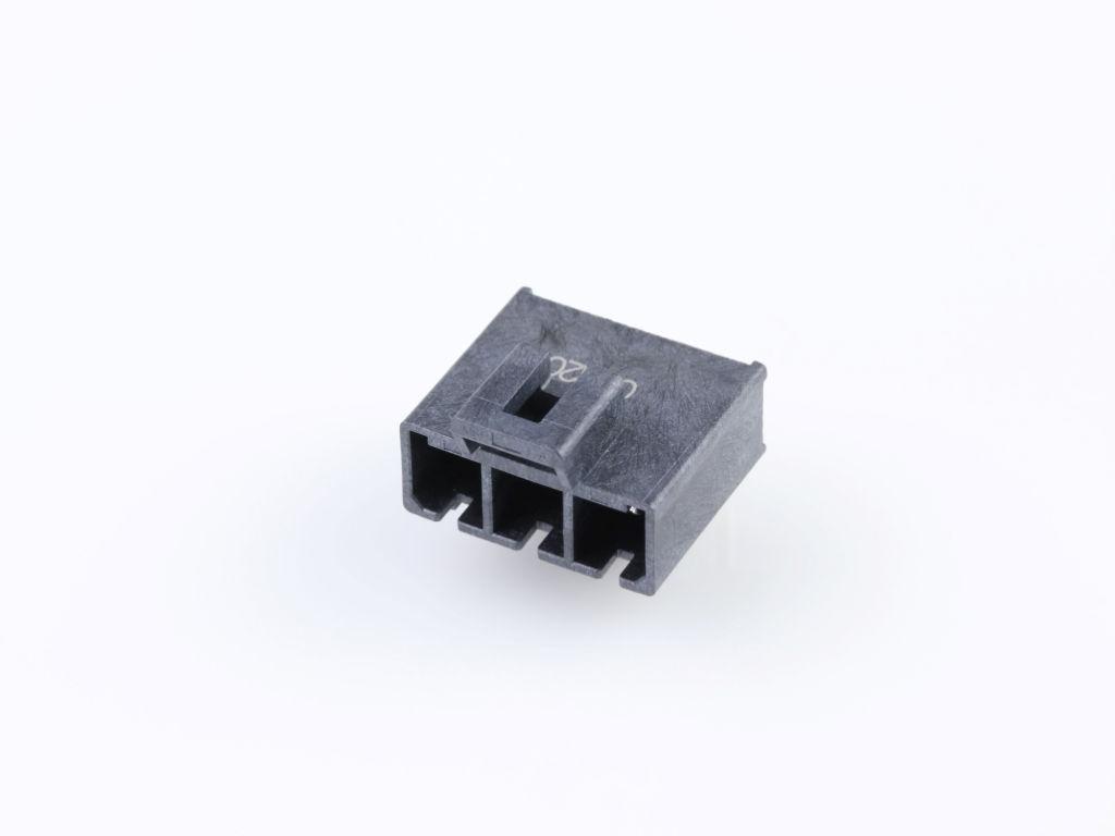 Mega-Fit Right-Angle Header, Single Row, 5.70mm Pitch, 3 Circuits, 1.52µm Matte Tin Plating, UL 94V-0, Glow-Wire Capable, Black