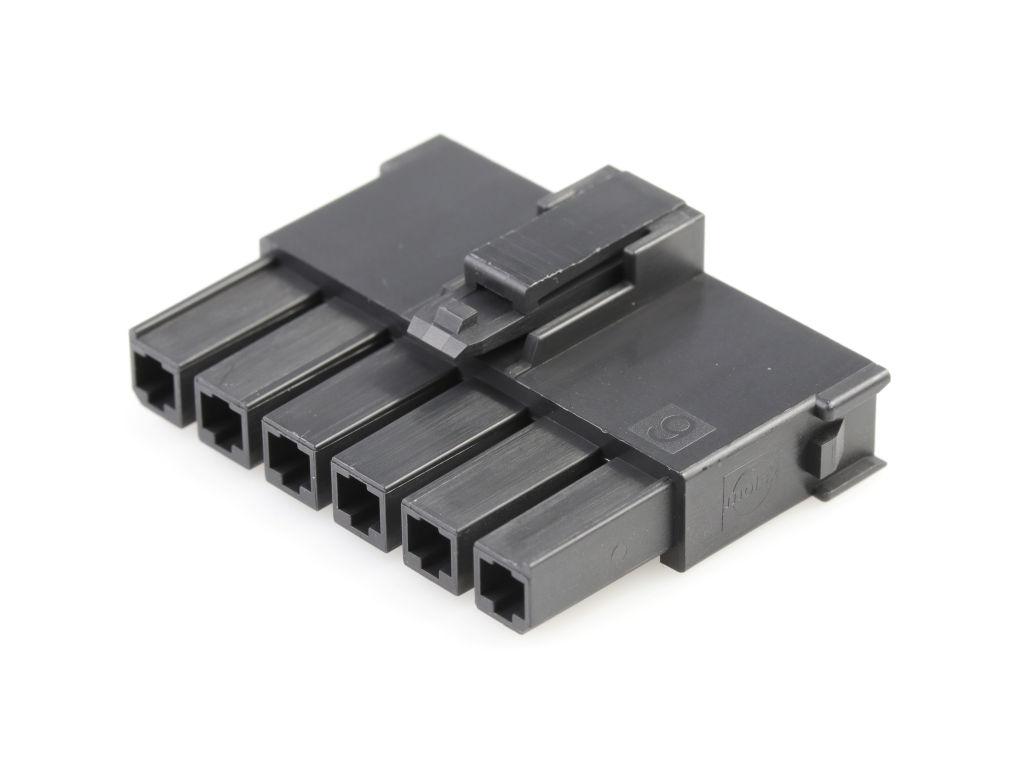Mega-Fit Tangless TPA-Capable Receptacle Housing, Single Row, 6 Circuit, UL 94V-0, Glow-Wire Capable, Black