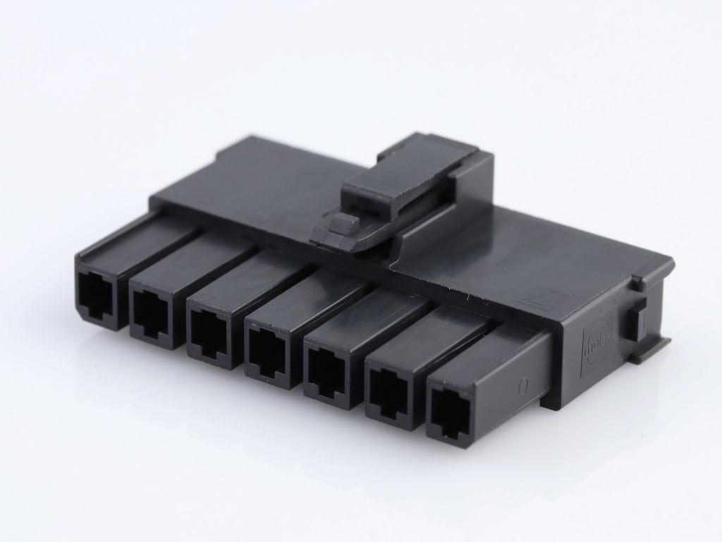 Mega-Fit Tangless TPA-Capable Receptacle Housing, Single Row, 7 Circuit, UL 94V-0, Glow-Wire Capable, Black