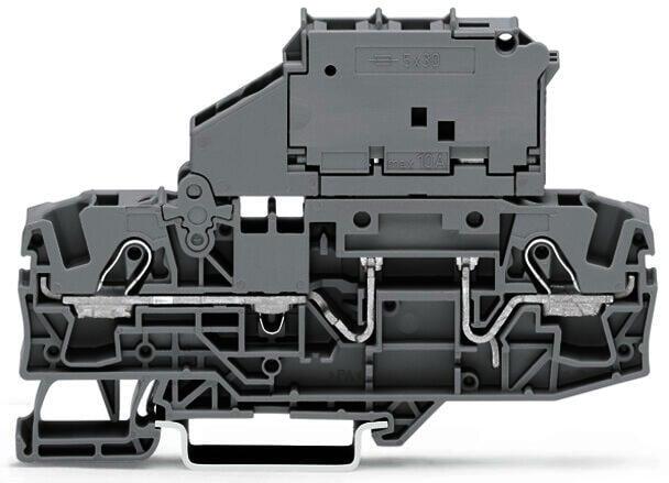 Fuse terminal block for 2 conductors with pivoting fuse holder for miniature fuse 5 x 30 mm with LED fuse failure indication 380 500 V for DIN rail 35 x 15 and 35 x 75 6 mm² Pushin CAGE CLAMP 600 mm² gray