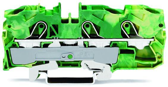 Earth terminal for 3 conductors 10 mm² suitable for Ex e II applications center and side marking for DIN rail 35 x 15 and 35 x 75 Pushin CAGE CLAMP 1000 mm² green yellow
