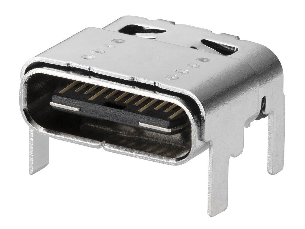 Universal Serial Bus (USB) Shielded I/O Receptacle, Type C, Right-Angle, Top Mount, Surface Mount, 0.76µm Gold (Au) Plating