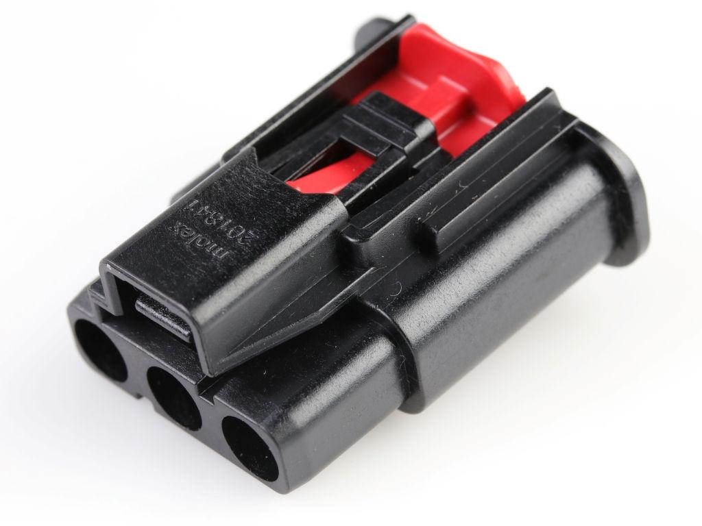 MultiCat High-Power Inline Receptacle Housing with CPA, 3 Circuits, Black, Key A