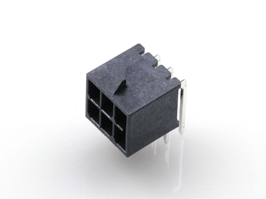 Micro-Fit+ Right-Angle Header, Through Hole, 3.00mm Pitch, Dual Row, 6 Circuits, Matte Tin (Sn) Plating, Glow-Wire Capable, Black