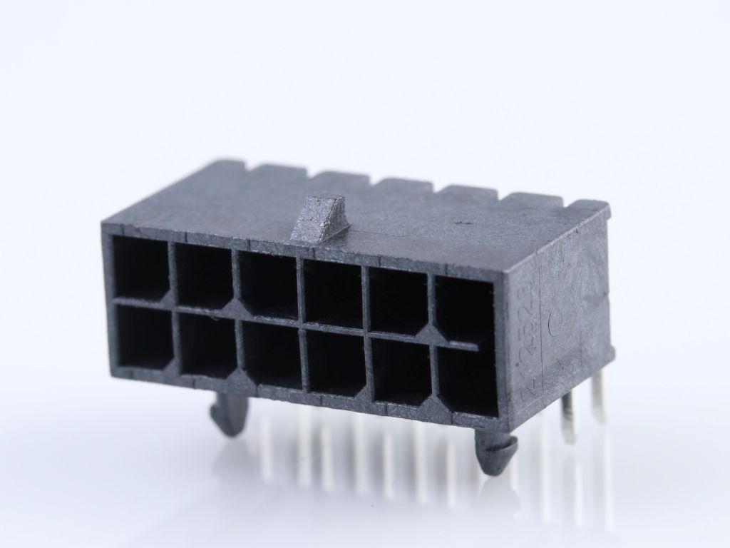 Micro-Fit+ Right-Angle Header, Through Hole, 3.00mm Pitch, Dual Row, 12 Circuits, Matte Tin (Sn) Plating, Glow-Wire Capable, Black