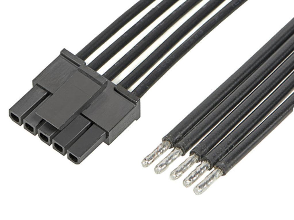 Micro-Fit 3.0 Female-to-Pigtail Off-the-Shelf (OTS) Cable Assembly, Single Row, 300.00mm Length, Tin (Sn) Plating, 5 Circuits, Black