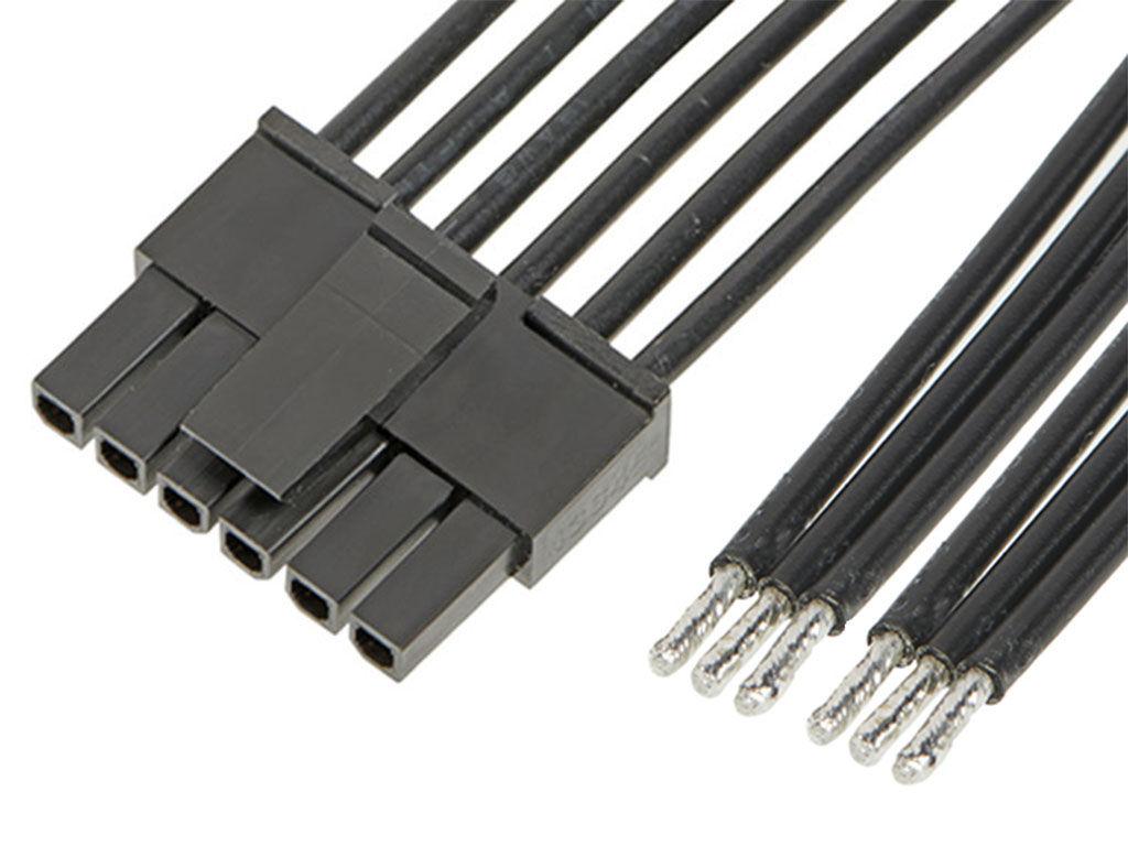 Micro-Fit 3.0 Female-to-Pigtail Off-the-Shelf (OTS) Cable Assembly, Single Row, 300.00mm Length, Tin (Sn) Plating, 6 Circuits, Black