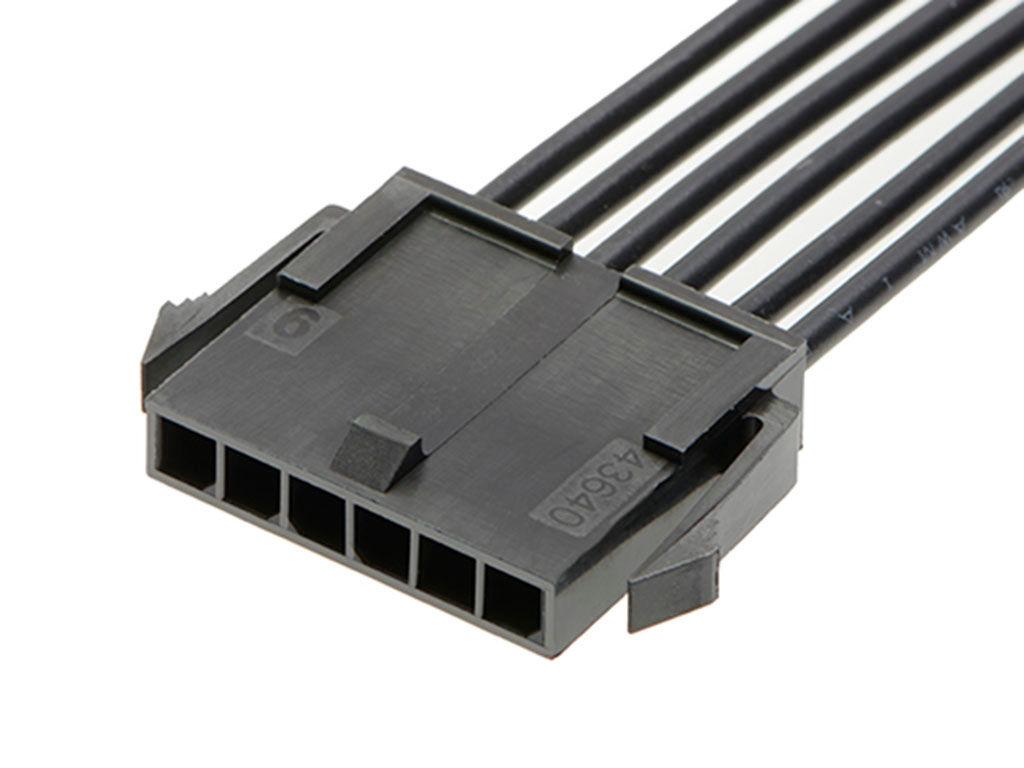 Micro-Fit 3.0 Male-to-Micro-Fit 3.0 Male Off-the-Shelf (OTS) Cable Assembly, Single Row, 300.00mm Length, Tin (Sn) Plating, 6 Circuits, Black