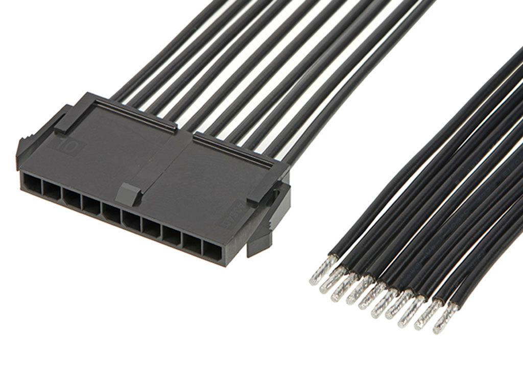 Micro-Fit 3.0 Male-to-Pigtail Off-the-Shelf (OTS) Cable Assembly, Single Row, 600.00mm Length, Tin (Sn) Plating, 10 Circuits, Black