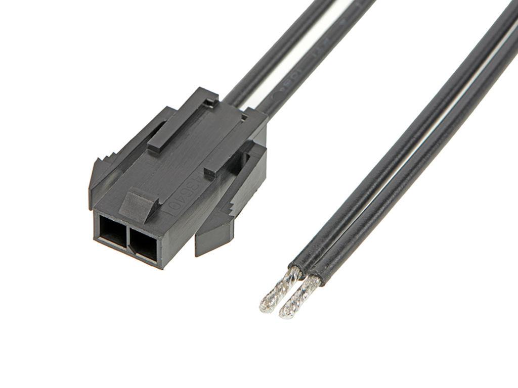 Micro-Fit 3.0 Male-to-Pigtail Off-the-Shelf (OTS) Cable Assembly, Single Row, 150.00mm Length, Gold (Au) Plating, 2 Circuits, Black