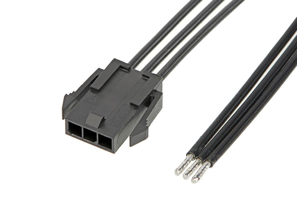 Micro-Fit 3.0 Male-to-Pigtail Off-the-Shelf (OTS) Cable Assembly, Single Row, 150.00mm Length, Gold (Au) Plating, 3 Circuits, Black