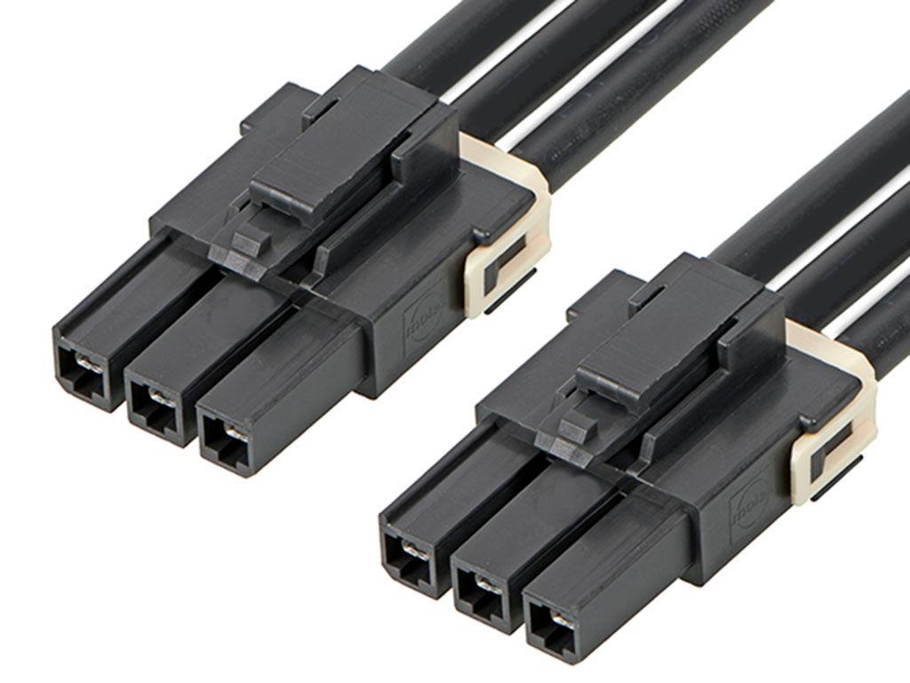 Mega-Fit Female-to-Mega-Fit Female Off-the-Shelf (OTS) Cable Assembly, Single Row, 150.00mm Length, Tin Plated, 3 Circuits, Black