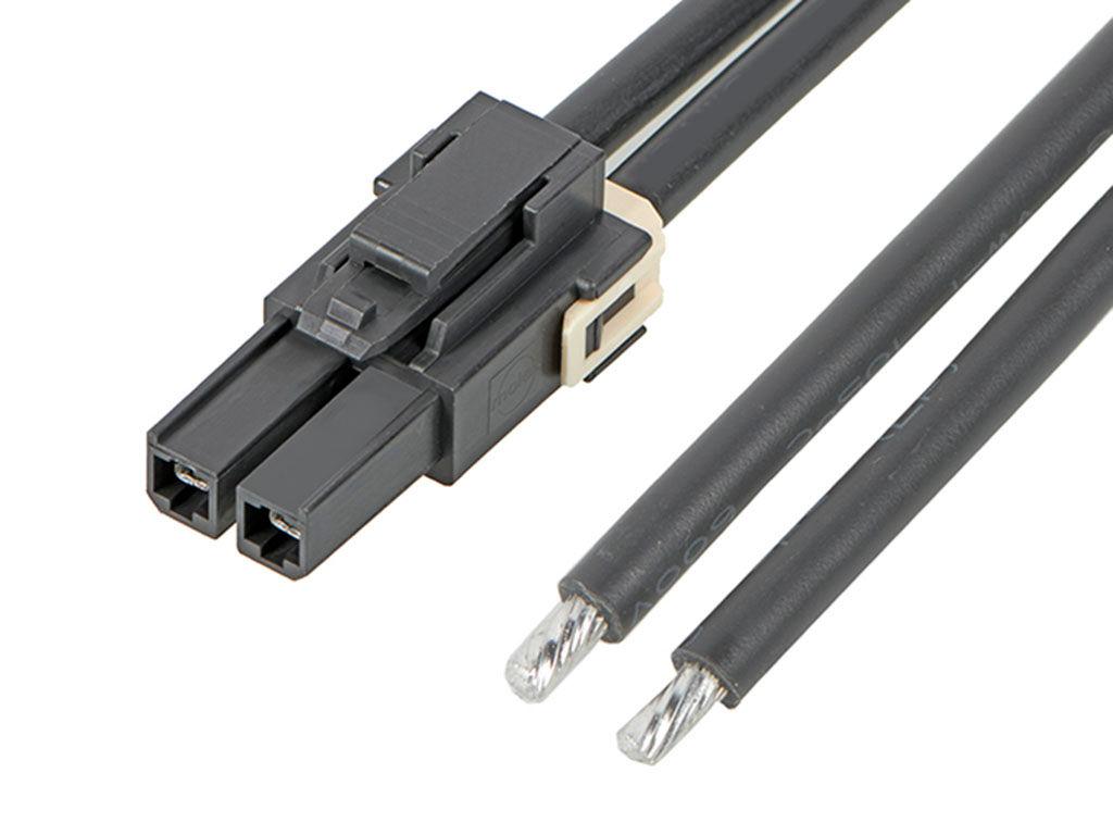 Mega-Fit Female-to-Pigtail Off-the-Shelf (OTS) Cable Assembly, Single Row, 300.00mm Length, Tin Plated, 2 Circuits, Black
