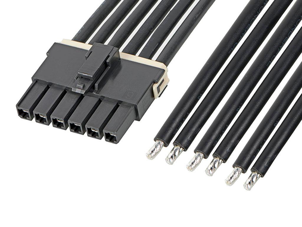 Mega-Fit Female-to-Pigtail Off-the-Shelf (OTS) Cable Assembly, Single Row, 600.00mm Length, Tin Plated, 6 Circuits, Black