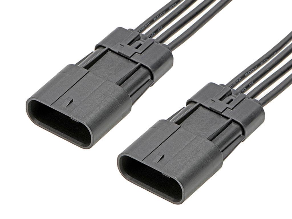 Squba 3.6 Male-to-Squba 3.6 Male Off-the-Shelf (OTS) Cable Assembly, 3.60mm Pitch, Single Row, 150.00mm Length, Tin (Sn) Plating, 4 Circuits, Black