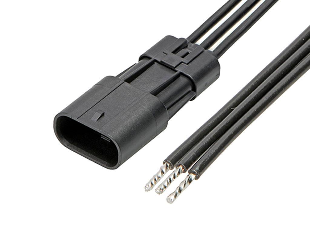 Squba 3.6 Male-to-Pigtail Off-the-Shelf (OTS) Cable Assembly, 3.60mm Pitch, Single Row, 300.00mm Length, Tin (Sn) Plating, 3 Circuits, Black