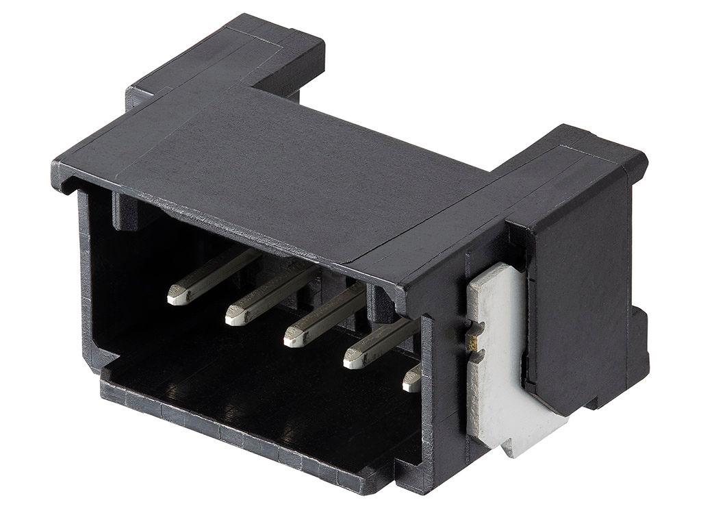 Micro-One Wire-to-Board Header, Right-Angle, 2.00mm Pitch, Single Row, Glow-Wire Capable, Surface Mount, 4 Circuits, Tin-Bismuth Plating, Black