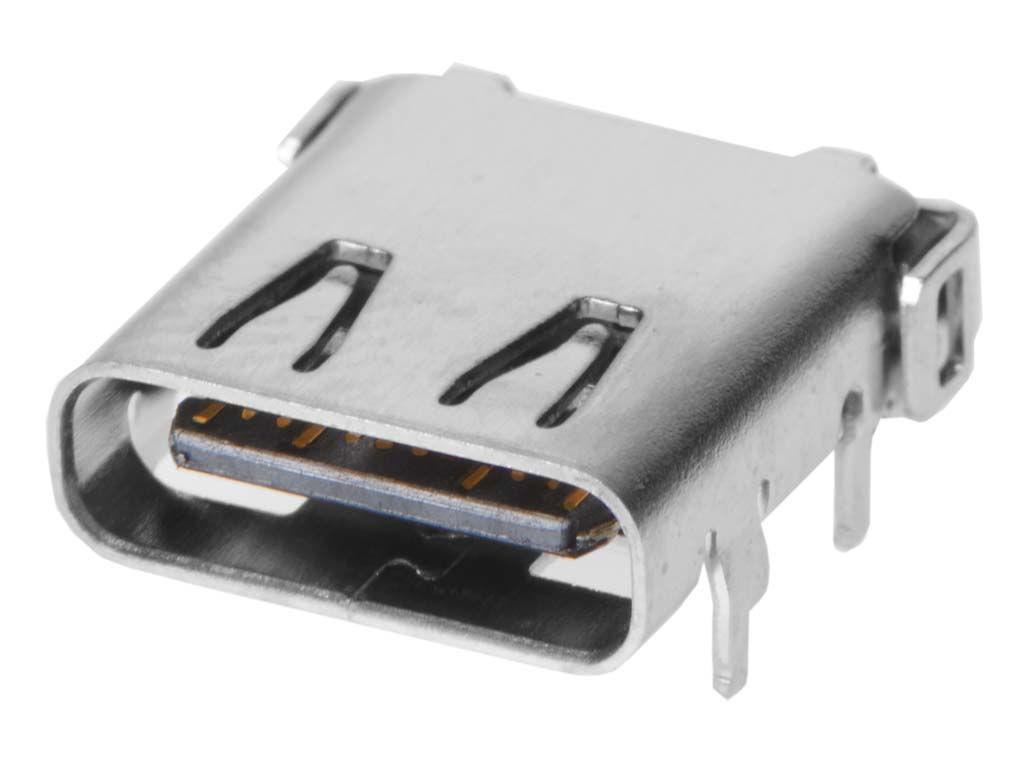 Universal Serial Bus (USB) Shielded I/O Receptacle, Type C, Right-Angle, Hybrid, Top Mount, 24 Circuits, Gold (Au) Plating