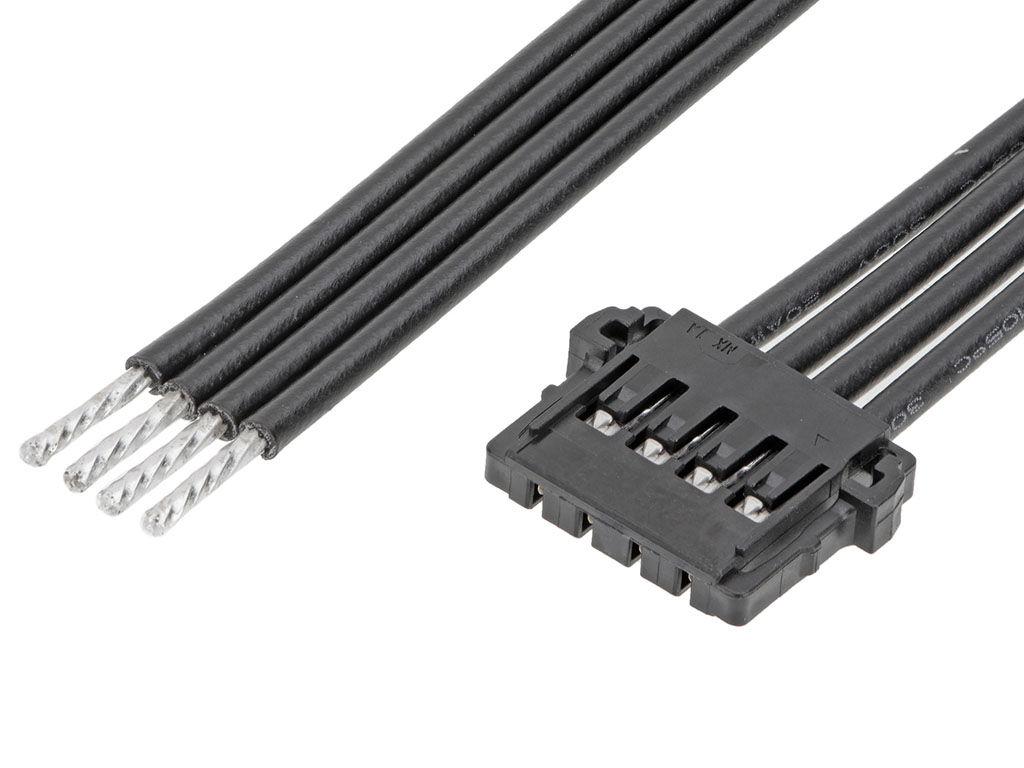 Pico-Lock Female-to-Pigtail Off-the-Shelf (OTS) Cable Assembly, Single Row, 100.00mm Length, Gold (Au) Plating, 4 Circuits, Black