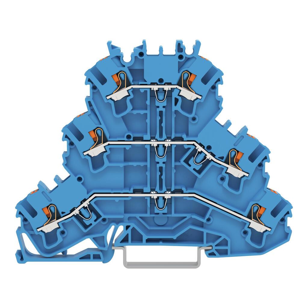 Three-plane terminal with push button NNN pass-through terminal without label holder for ExeII and Exi applications for DIN rail 35 x 15 and 35 x 75 25 mm² Pushin CAGE CLAMP 250 mm² blue