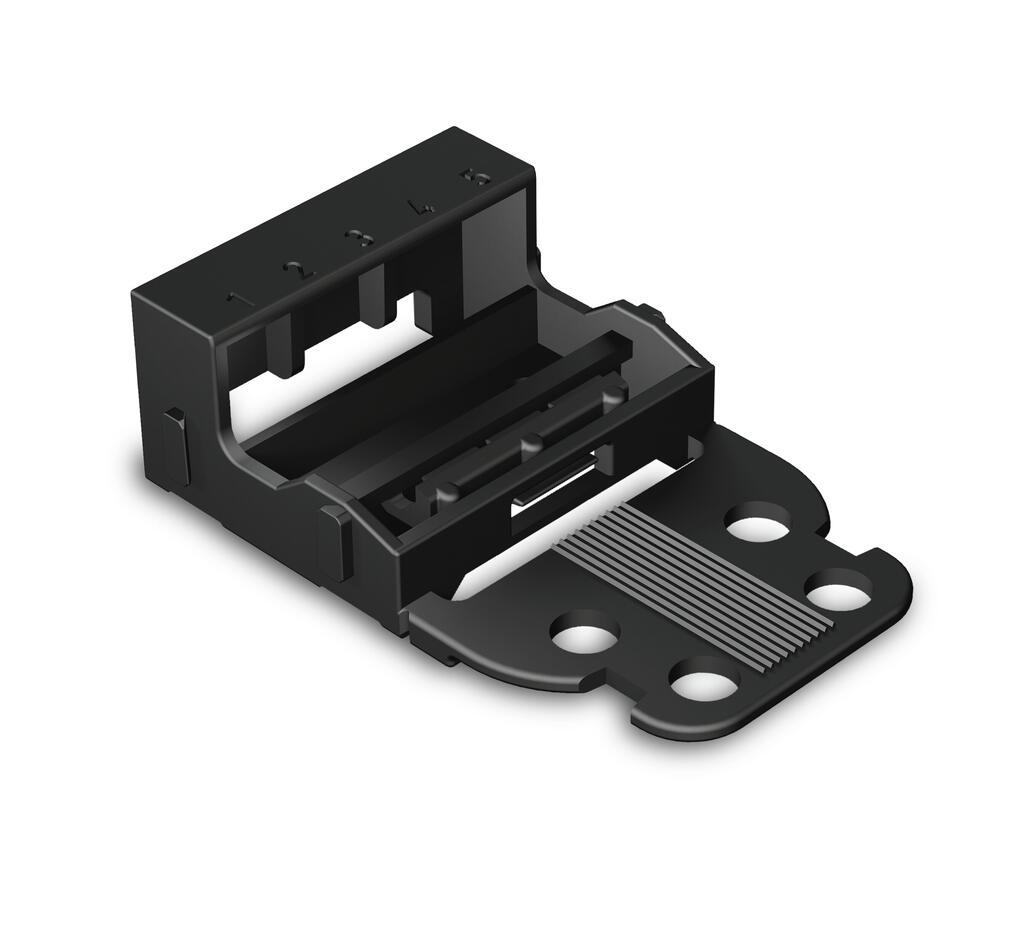 Mounting bracket terminals for 5 conductors Series 221 4 mm² for screw mounting black