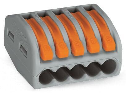 CLASSIC joint connector for all types of conductors max 4 mm² 5 conductors with levers gray box Ambient temperature max 40 °C 250 mm² gray