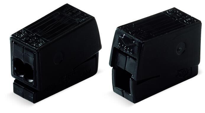 Lighting connector for 2 button wires lamp side Lamp side for all types of conductor Installation side for rigid conductors Series 224 max 25 mm² Ambient temperature max 75 °C 250 mm² black
