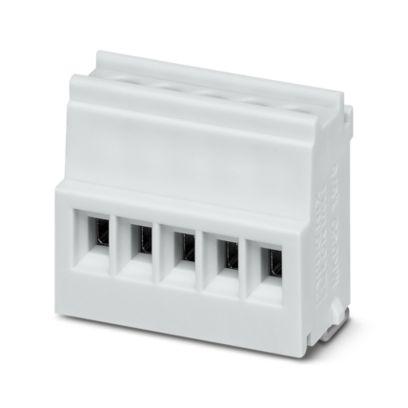 PCB terminal block, nominal current: 8 A, rated voltage (III/2): 160 V, nominal cross section: 1.5 mm2, number of potentials: 5, number of rows: 1, number of positions per row: 5, product range: MKDSO 1,5/..-L, pitch: 3.5 mm, connection method: Screw connection with tension sleeve, mounting: Wave soldering, conductor/PCB connection direction: 0 °, color: light grey, Pin layout: Linear pinning, Solder pin [P]: 2.3 mm, number of solder pins per potential: 1, type of packaging: packed in cardboard. Product with pin output on left side