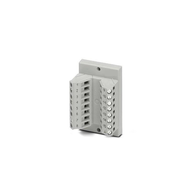 The VARIOFACE feed-through module implements a 1:1 connection between screw connection terminal blocks and a D-SUB miniature pin strip (number of positions: 15). A separate ground tap is available.
