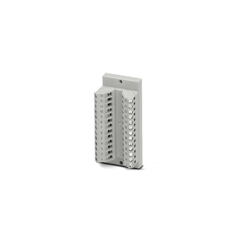 The VARIOFACE feed-through module implements a 1:1 connection between screw connection terminal blocks and a D-SUB miniature socket strip (number of positions: 25). A separate ground tap is available.
