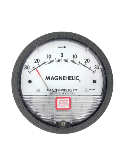 Differential pressure gage, range 50-0-50 Pa, minor divisions 2.0, calibrated for vertical scale position, 3% accuracy