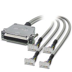 conjunto de cabos redondos; controlador: mitsubishi electric melsec q (x81); conexão 1: régua de soquetes d-sub (1x 37 posições); conexão 2: régua de soquetes idc / flk (4x 14 posições); comprimento do cabo: 3 m