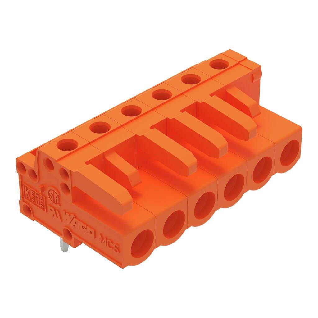Angled THT socket Pin pitch 508 mm 6-pin Solder pins 06 x 10 mm orange