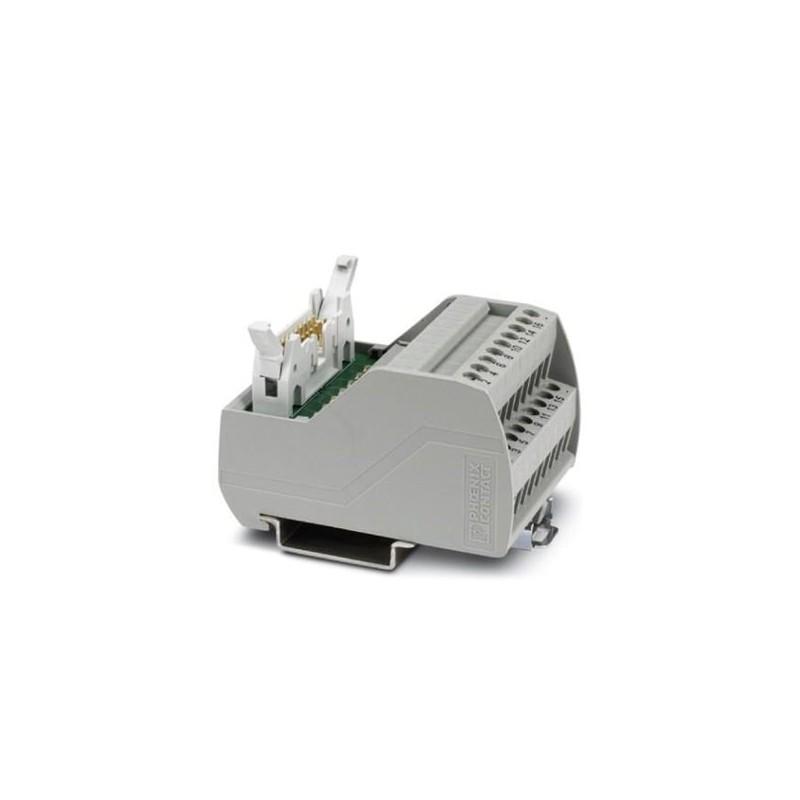 VARIOFACE module, with screw connection and flat-ribbon cable connector, for mounting on NS 35 rails, with pin strip and short and long locking latches for socket strips, 16-pos., with LED