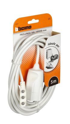 Domestic extension cord 2PT 3x1mmq length 5m with 2PT 16A plug and German socket color white
