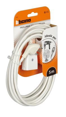 Domestic extension cord 2PT 3x0.75mmq length 5m with plug and socket 2PT 10A color white