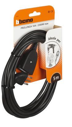 Domestic extension cord 2PT 3x0.75mmq length 5m with plug and socket 2PT 10A color black