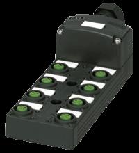 Splitter boxes V1-8/16A-E2 V1-8/16A-E2 Quick and easy installation with cage clamp terminals Twin communication of plug-in stations LED indicator for module supply and I/O status