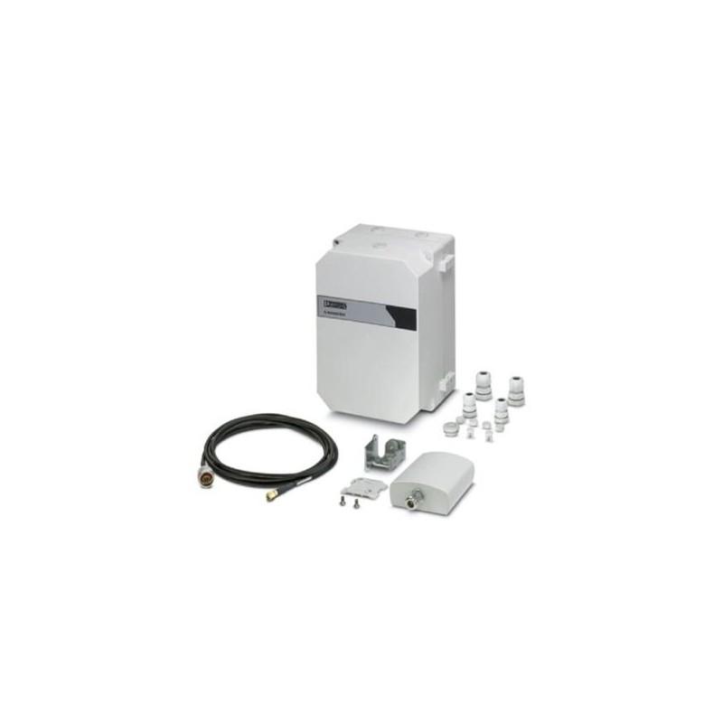 Control box set for constructing wireless systems for industrial applications, incl. panel antenna and 3m antenna cable for 2.4/5GHz, IP66, with DIN rail, plugs, and screw connections, with 100 ... 240V power supply unit, without devices