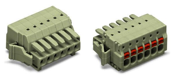 Female plug for 1 conductor Pushin CAGE CLAMP 15 mm² push button Pin pitch 35 mm 10 poles 100 % protected against polarity reversal Side locking levers 150 mm² light gray