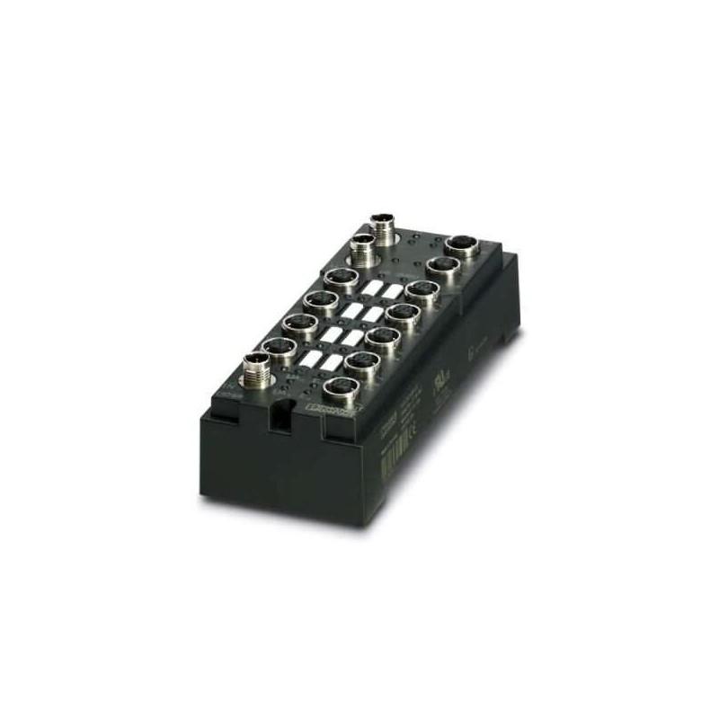 The local bus device has digital inputs and outputs. Functions: 8 digital inputs, 3 ms filter time, 8 digital outputs of 500 mA each, 500 kbaud/2 Mbaud selection, channel-specific diagnostics, short-circuit and overload protection, M12 fast connection technology.