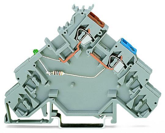 Power clamp for sensor for 4 conductors Green LED Power supply from sensor side with colored conductor inputs 25 mm² CAGE CLAMP 250 mm² gray
